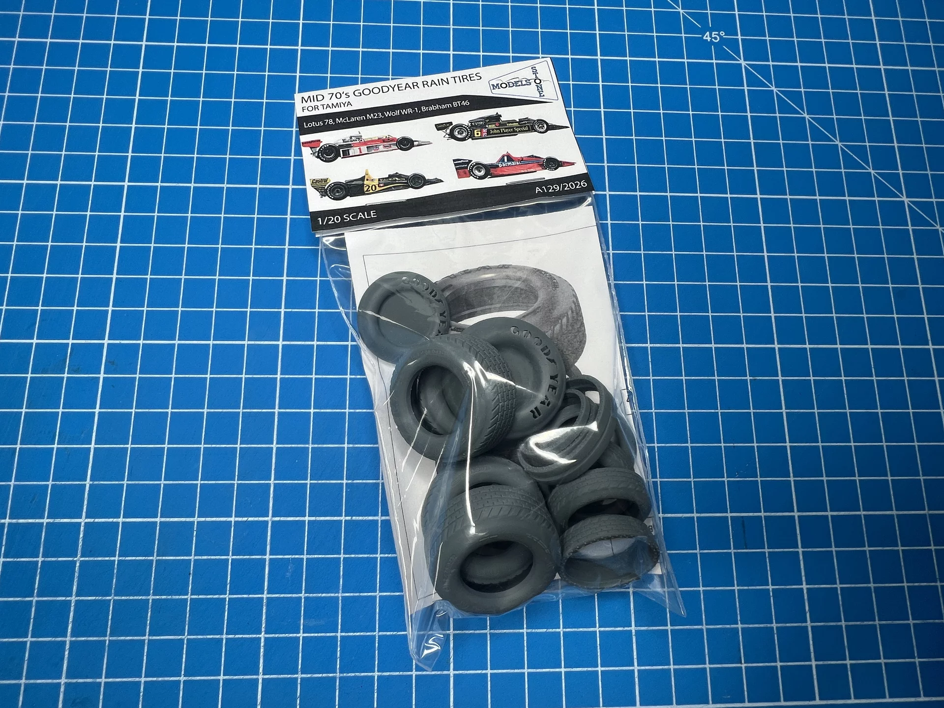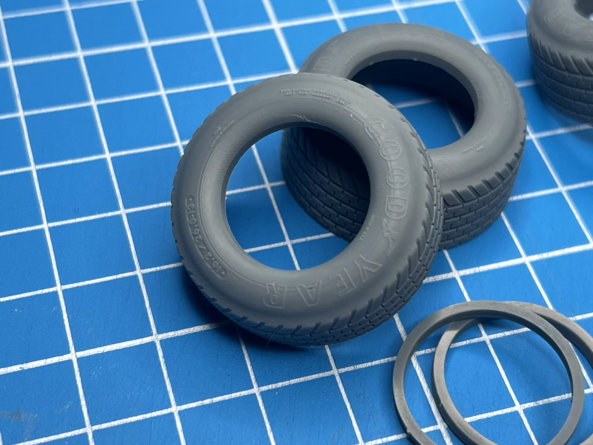 This set of tires replicates the design of Goodyear rain tires